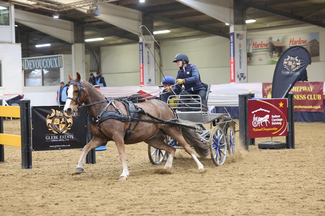 The Supreme Champion of the British Indoor Carriage Driving Championships 2026, open pony driver Georgina Hunt, kept a cool head and jumped from third position going into the decisive obstacle driving phase. Her daughter Sophie, 16, the highest placed and only junior in the class, gave her a pep talk beforehand and this, said Georgina, helped her deliver four consistently faultless times. Lucy Scott lay in second place overnight and led after the first two obstacles but an unlucky knockdown gave her the Reserve Champion spot. Nick Hammond’s fastest overall obstacle times rocketed him from fifth overnight to third.